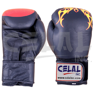 Boxing gloves, m/o real leather, flame printing, inside high density injection mold.