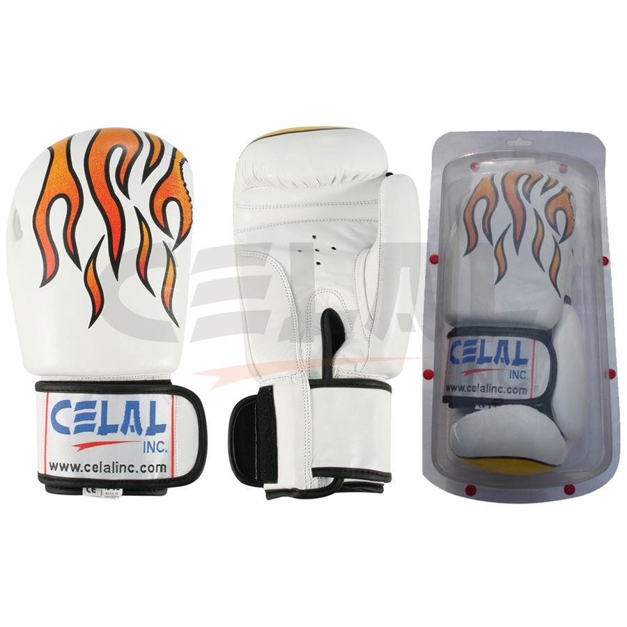 Boxing gloves, m/o real leather, flame printing, inside highdensity injection mold.