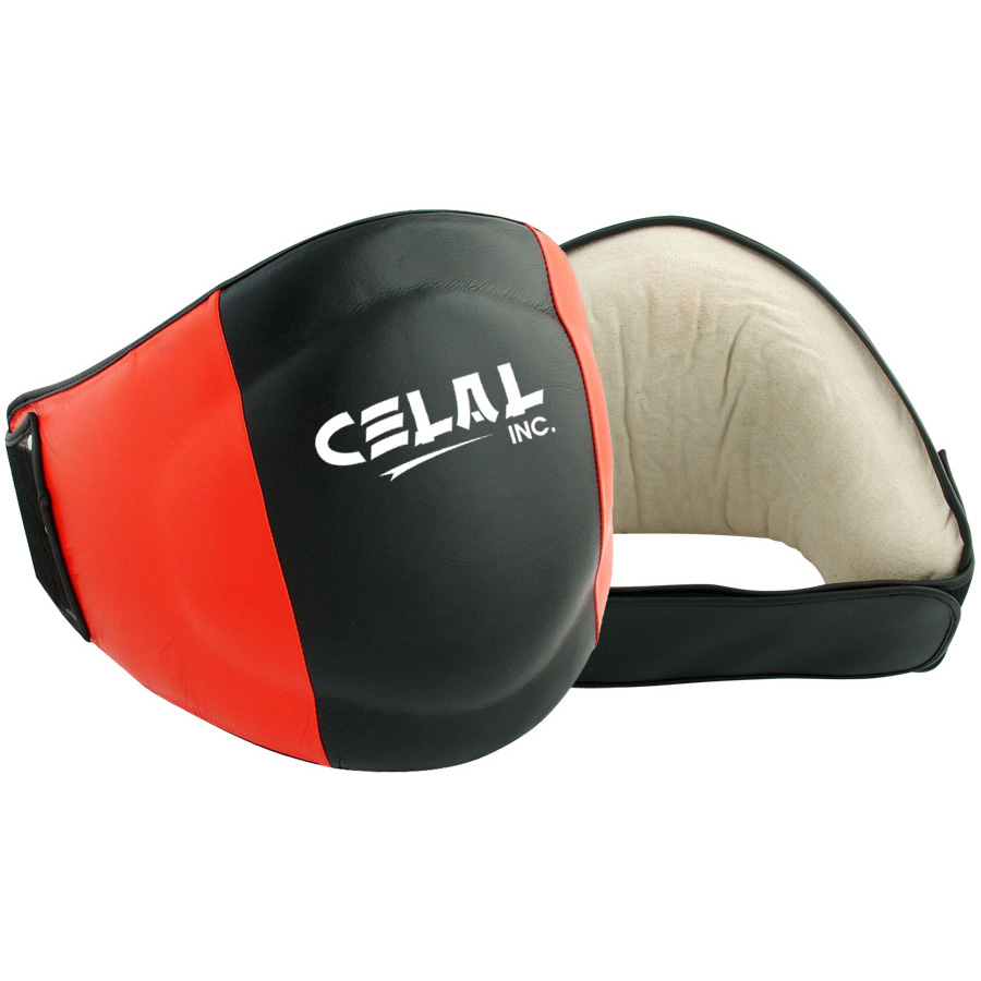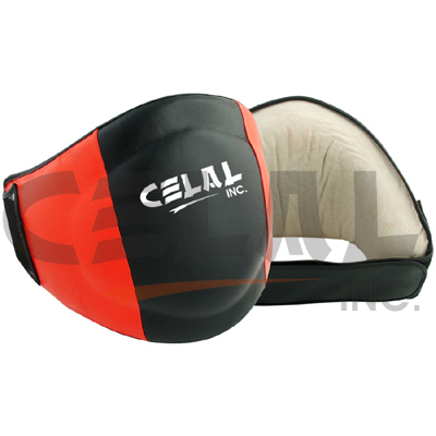 Belly protector, synthetic leather with 2” of sleek padding, strike protection, with Velcro closure, one size fit most.