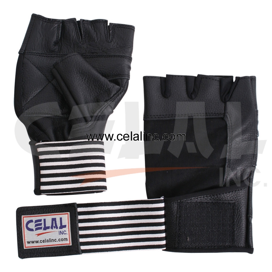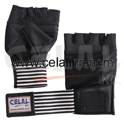 Weight lifting gloves, m/o real leather, fourway on back .Elastic Velcro closure,