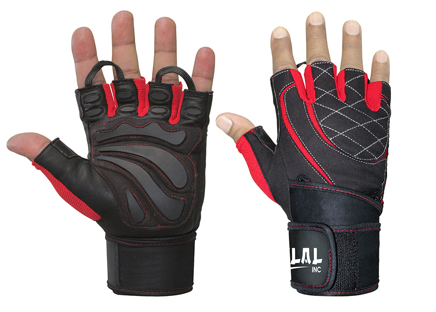 Weight Lifting Gloves made of high quality leather and four way fabric with durable stitched strong rubber padding for palms safety, protect hands from calluses & any type of strain, comes with 19.5" long wrist wrap which increase your lifting stamina as well, available in different colors and materials.