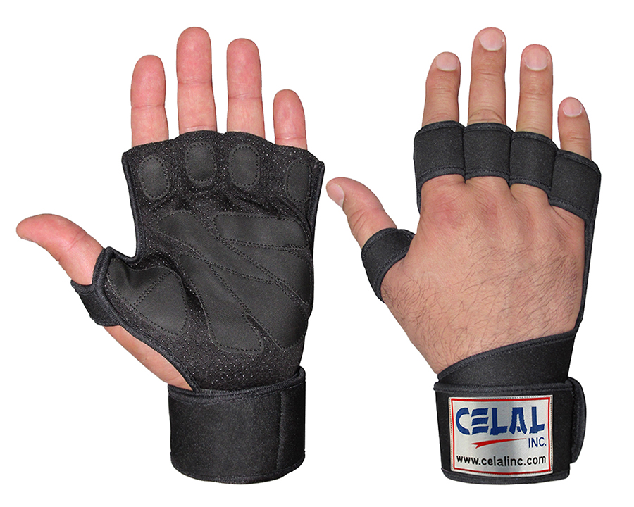 Weightlifting gloves made of high quality 3 to 4mm thick neoprene and synthetic leather comes with long wrist wrap which is evenly helpful in increasing stamina covers complete palm and protect hands from calluses and any type of hands abrasion while lifting. Available in different colors & sizes.