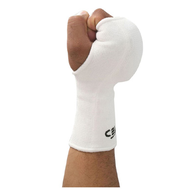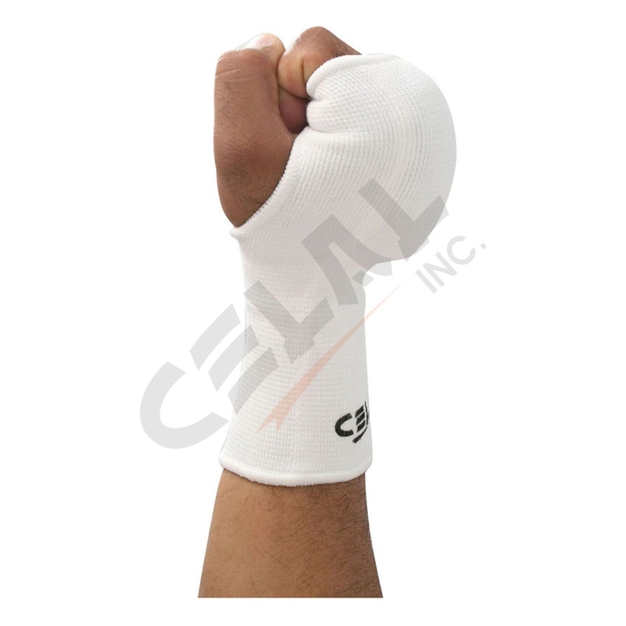 Karate mitt, stretchable poly/cotton with high density foam padding.